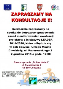 W piątek 27.11.2015r. o godzinie 10.00 w biurze Stowarzyszenia Dolina Noteci odbędzie się spotkanie, które będzie dotyczyć projektów grantowych. “Konsultacje społeczne organizowane są w ramach działania “Wsparcie dla rozwoju lokalnego w ramach LEADER”, Poddziałanie “Wsparcie przygotowawcze”, objętego Programu Obszarów Wiejskich na lata 2014 – 2020.”