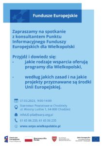 W dniu 16.02.2023 r w siedzibie Centrum Aktywności Seniora w Chodzieży przy ul. Dworcowej 1, odbyło się spotkanie fokusowe, w związku z pracami nad nową Lokalną Strategią Rozwoju na lata 2023-2027. Dyrektor Biura Pani Dominika Koczorowska omówiła proponowane zakresy tematyczne, które mogłyby być realizowane w nowym okresie programowania i przykładowe kryteria oceny i wyboru operacji. Uczestnicy zgłosili …