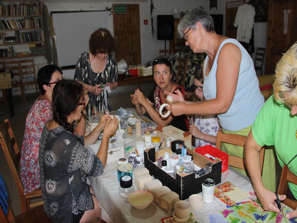 Dnia 18 lipca 2014r. w Gospodarstwie Agroturystycznym w Szamocinie odbyły się warsztaty decoupage. Celem spotkania było rozbudzenie nowych zainteresowań artystycznych. Podczas warsztatów przekazana została wiedza teoretyczna jak również praktyczna na konkretnych przedmiotach. Zajęcia prowadziła Pani Lidia Woźniczka, która posiada wieloletnie doświadczenie w zakresie decoupagu i innych technik artystycznych. W spotkaniu brało udział 10 osób. Zajęcia trwały od godziny 10:00 do 18:00. Każdemu uczestnikowi przydzielono materiały do pracy. Warsztaty decoupage okazały się niesamowitą zabawą, dzięki którym uczestnicy mieli okazje do nawiązania nowych relacji i kontaktów.